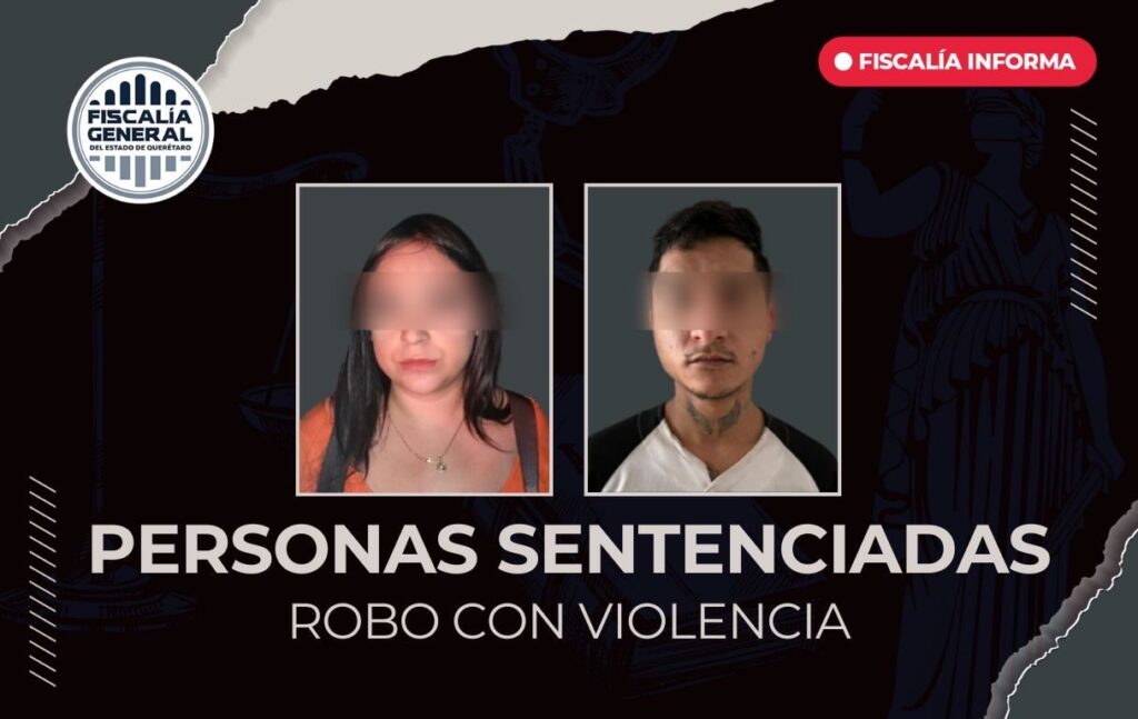 La Fiscalía General del Estado de Querétaro obtuvo sentencia condenatoria en contra de Cristian Adrián “N” y Mariana Amor “N”, por su intervención en el delito de robo de vehículo con violencia, ocurrido en el municipio de El Marqués.