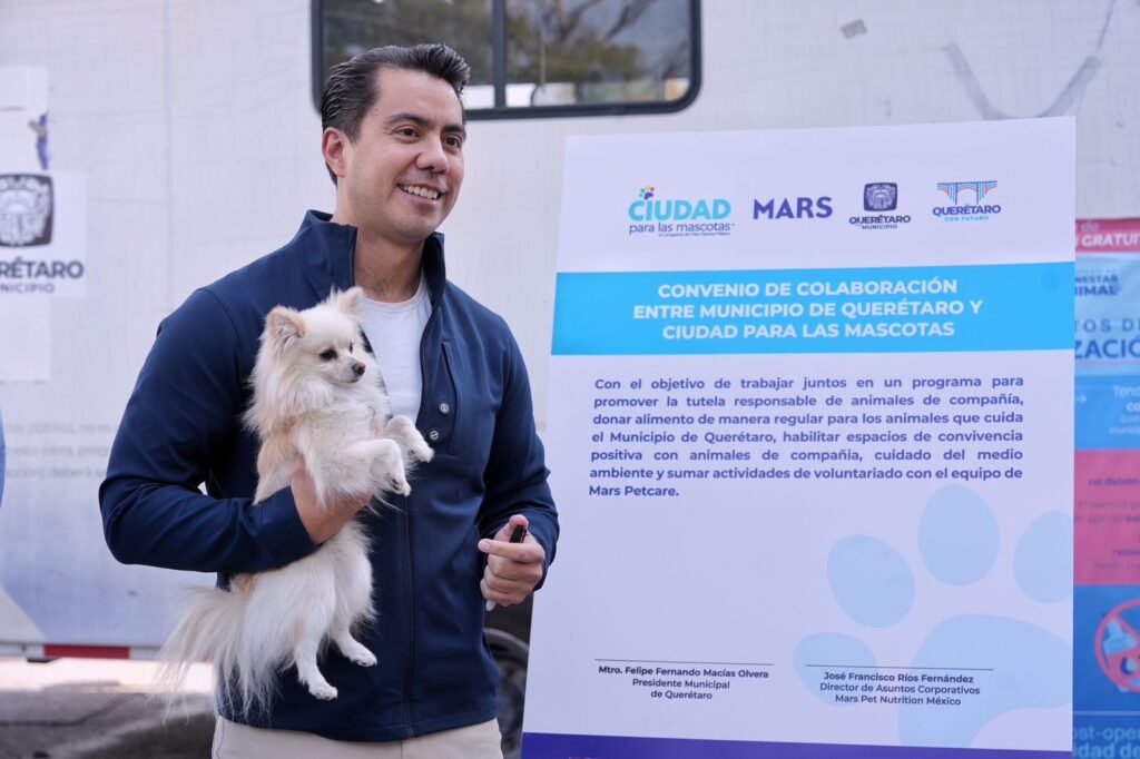 El presidente municipal de Querétaro, Felifer Macías, asistió a la jornada de esterilización en el auditorio del Centro de Desarrollo Comunitario de Cerrito Colorado, en donde firmó un convenio entre el municipio de Querétaro y Ciudad de las mascotas, un programa de la empresa Mars Petcare México, que tiene la finalidad de impulsar acciones para fomentar el cuidado responsable de los animales de compañía y promover su convivencia positiva en los espacios públicos.