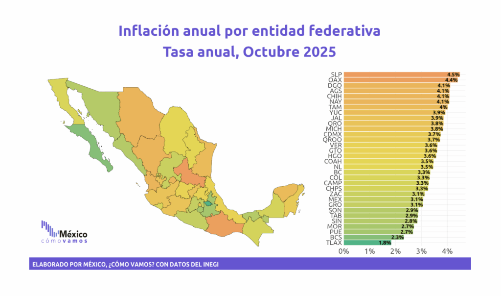 En octubre de 2025 la inflación en el país fue de 3.57% anual, mostrando una disminución desde el 3.76% en septiembre.