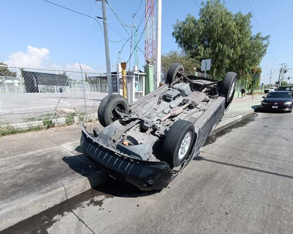 Aparatoso choque con volcadura en la carretera a Tlacote