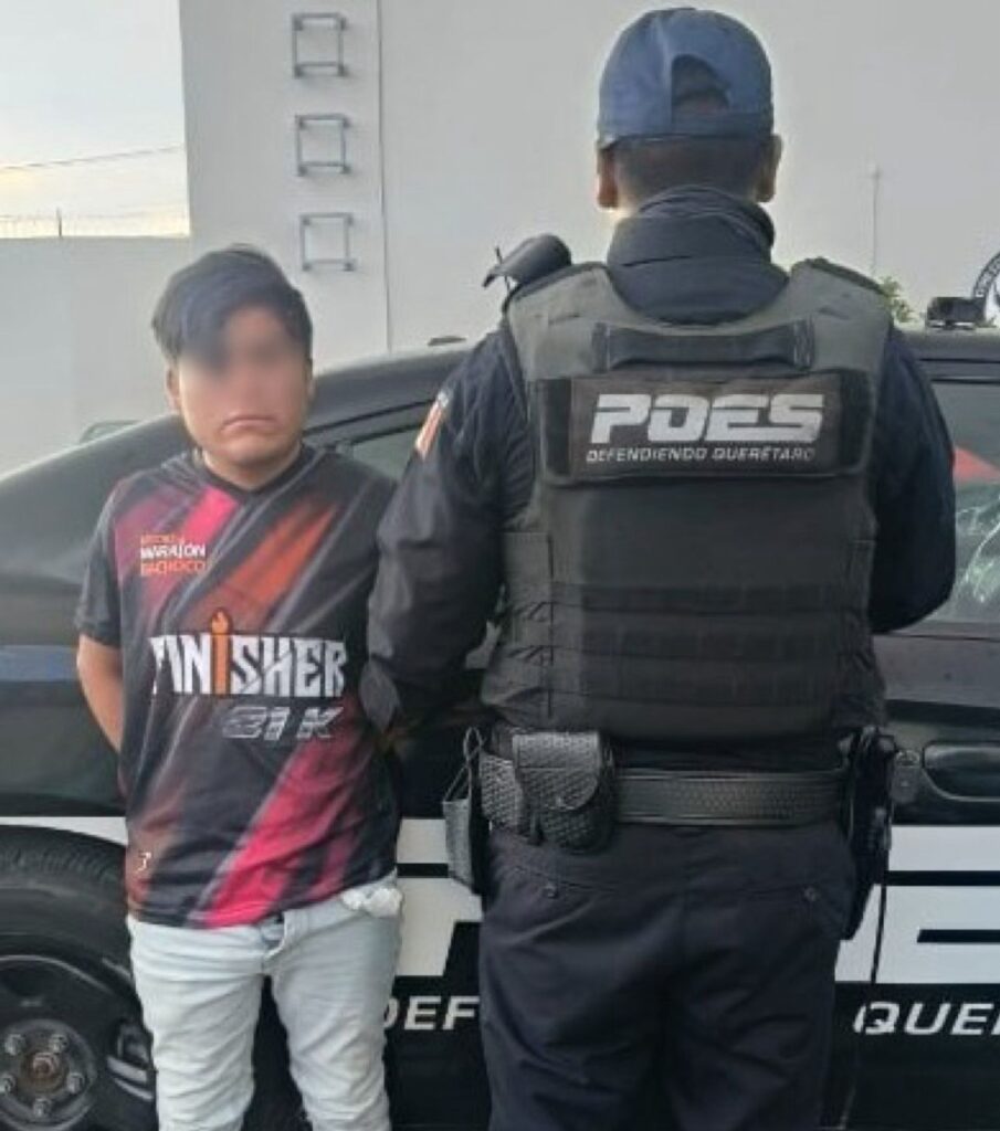 Durante recorridos preventivos en el Centro Histórico, Policías Estatales fueron abordados en avenida Zaragoza al cruce con Corregidora, en la capital, por un ciudadano que solicitó apoyo, luego de que un sujeto lo amenazara con un arma blanca para despojarlo de sus pertenencias.