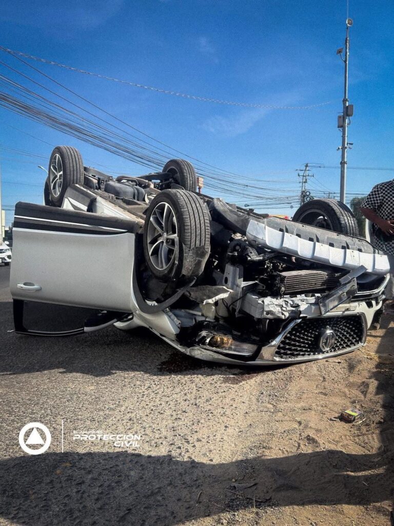 Fue en el cruce con la carretera a Bernal, en donde el auto perdió el control, posteriormente volcó, quedando con los neumáticos arriba.