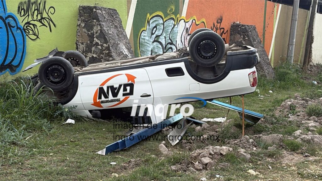 Daños materiales y carga vehícular, fue lo que ocasionó la volcadura de una camioneta, que se registró en la carretera a Bernal, en el municipio de El Marqués.