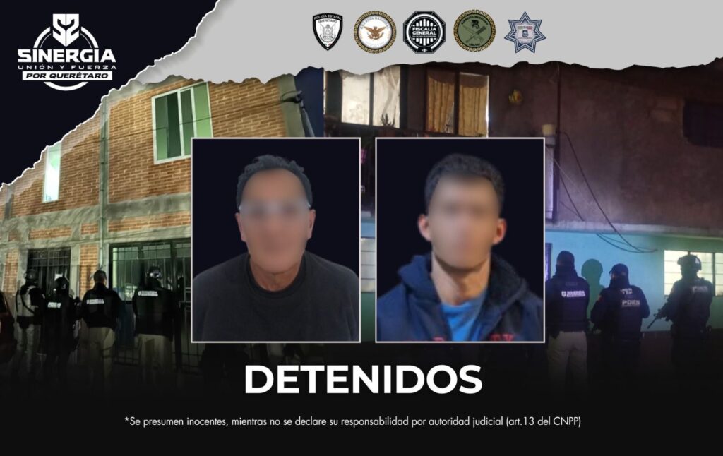 Las acciones fueron encabezadas por personal ministerial y pericial de esta Fiscalía, así como de la Policía de Investigación del Delito, con apoyo de la Guardia Nacional, Ejército Mexicano, Policía Estatal y Secretaría de Seguridad Pública Municipal, ejecutándose en cuatro inmuebles localizados en los municipios de Cadereyta de Montes, Amealco de Bonfil y Landa de Matamoros.