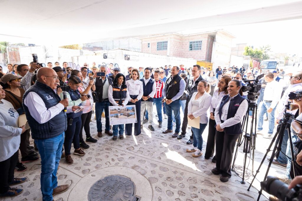 Como parte de su exposición, el funcionario estatal detalló que los trabajos también incluyeron 830 metros lineales de agua con 80 tomas domiciliarias, 760 metros lineales de alcantarillado sanitario con 58 descargas domiciliarias, la instalación de señalamiento horizontal y vertical, así como mil 920 metros de banquetas de guarniciones y cuatro mil 200 metros cuadrados de empedrado empacado en mortero.