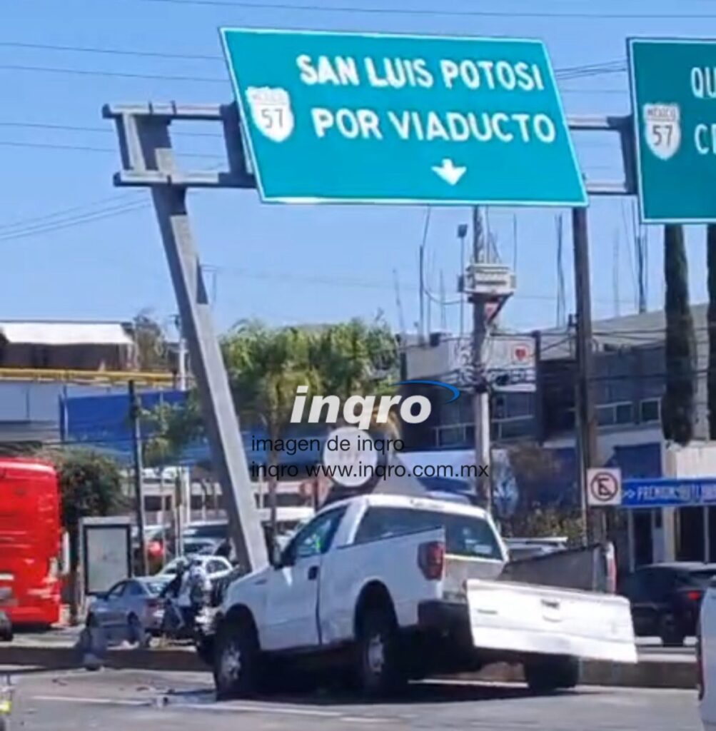 Severa carga vehicular y daños materiales, fue lo que dejó un aparatoso accidente entre dos vehículos, el cual se registró sobre Paseo Constituyentes en dirección al Centro de la capital queretana.