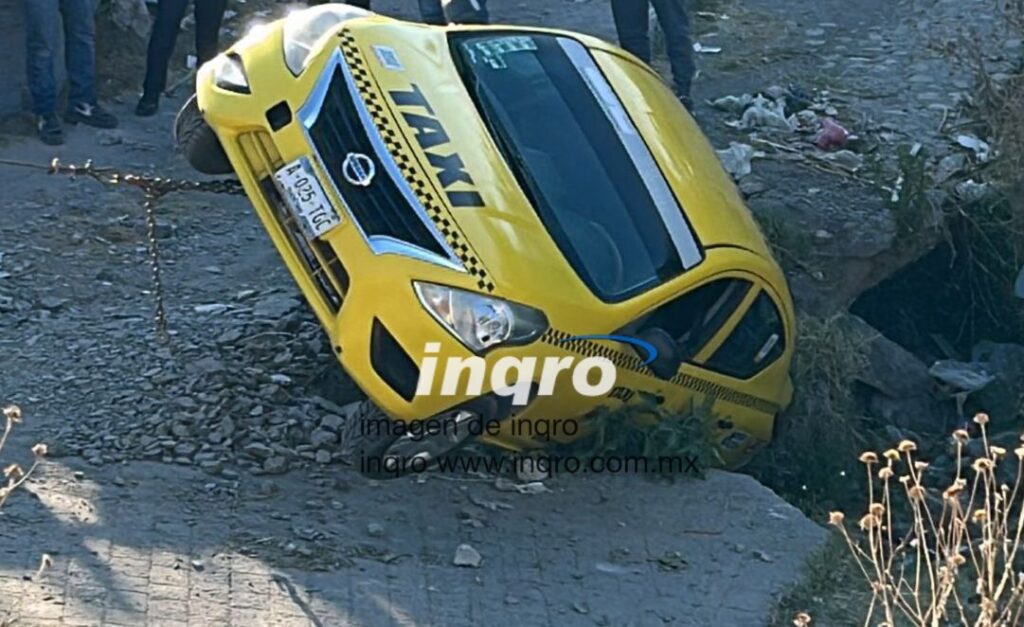El taxi, subía una pendiente en la calle Adolfo López Mateos, cuando presentó una falla mecánica, lo que derivó que el vehículo comenzara a retroceder.