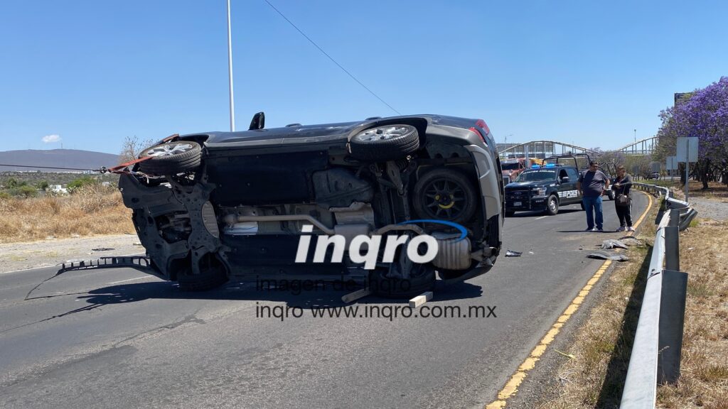 Fue en dirección a Bernardo Quintana, entre la UAQ campus aeropuerto y el Hito, en donde la camioneta marca Hyundai, color negro, perdió el control, chocó contra la barra metálica de contención y terminó volcando.