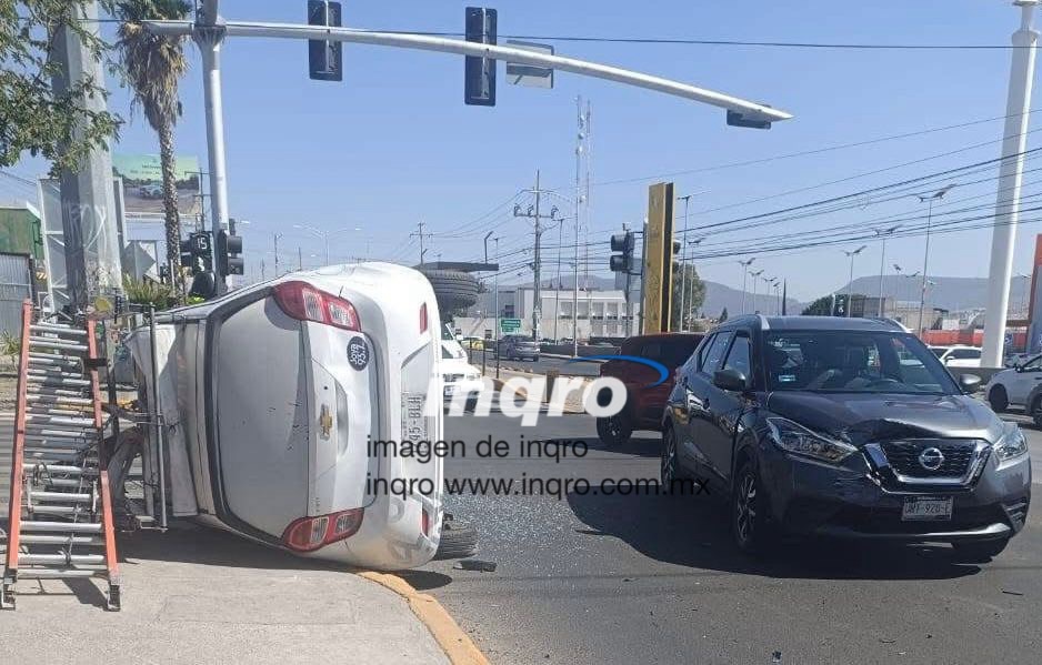 Elementos de la Policía Municipal de Querétaro y servicios de emergencias, se movilizaron a la avenida Pie de la Cuesta, en donde se reportó un aparatoso choque con volcadura.