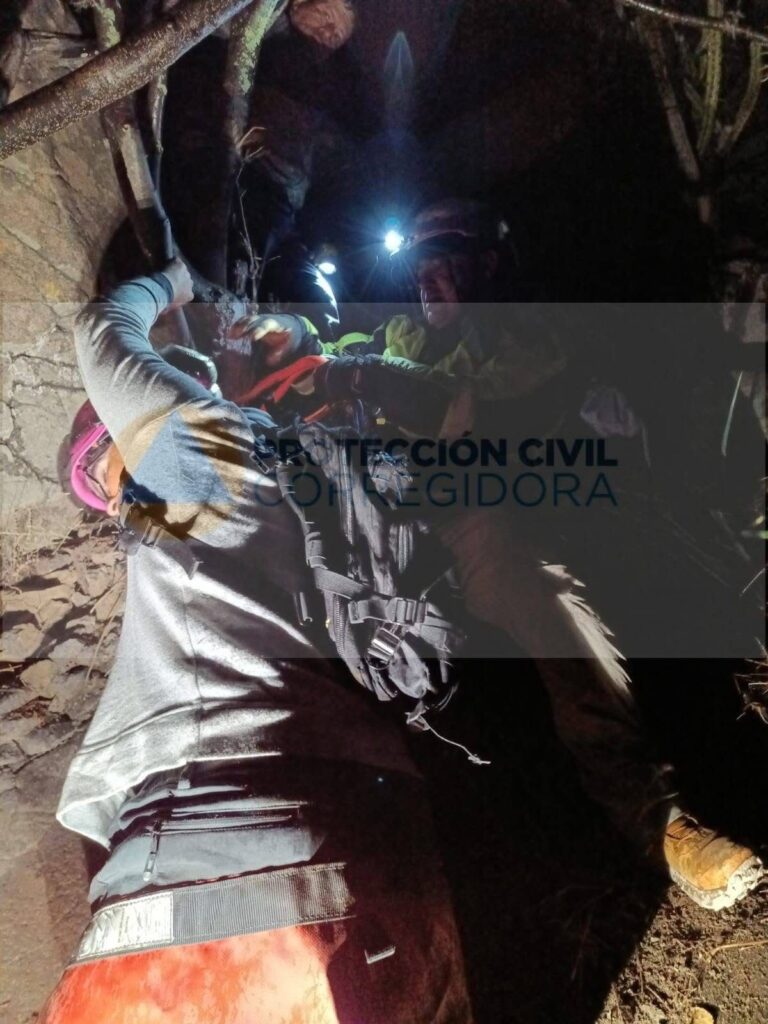 Tras varias horas de búsqueda, elementos de Protección Civil del municipio de Corregidora, realizaron el exitoso rescate de una persona, que se encontraba atrapada en la Cañada de la Plata.