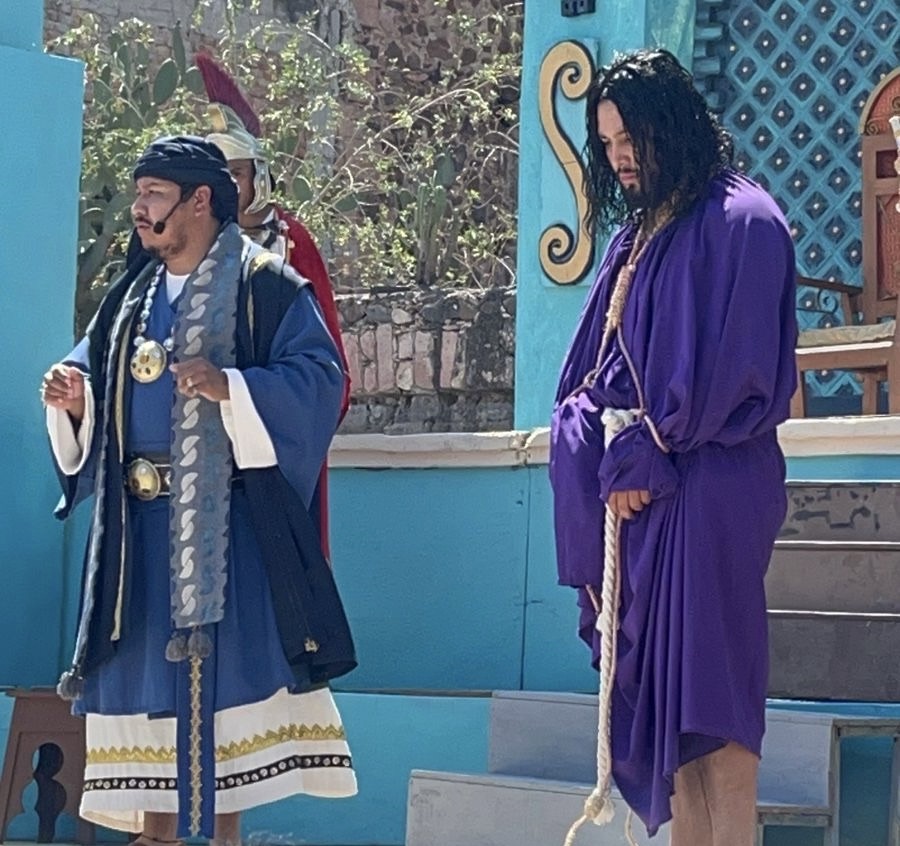 En estos momentos, se desarrollan las primeras escenas en el atrio de la iglesia, para posteriormente subir al cerro para llevar a cabo la representación de la subida de Jesús a la cruz.