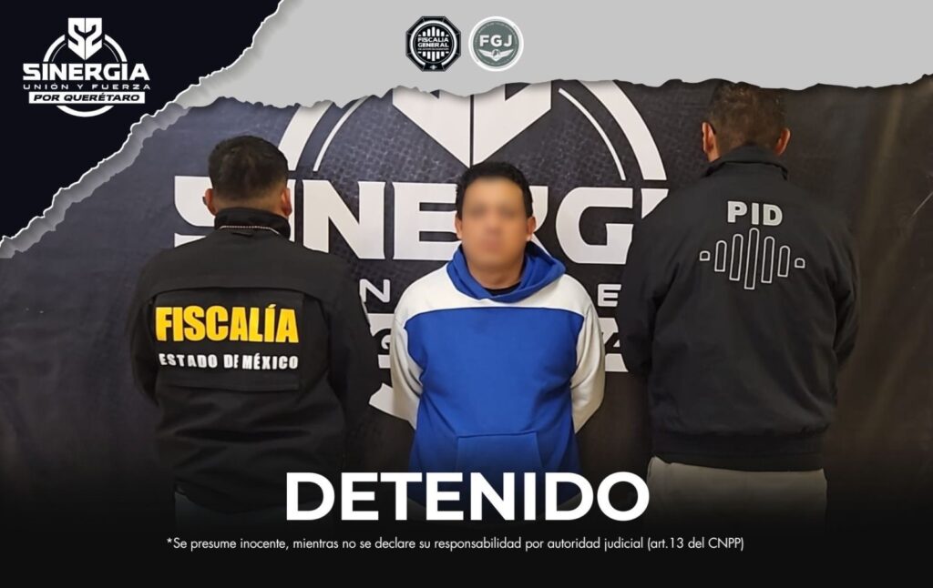 La Fiscalía General del Estado de Querétaro, a través de la Policía de Investigación del Delito, cumplimentó una orden de aprehensión por el delito de extorsión, en atención a una solicitud de colaboración con autoridades del Estado de México.