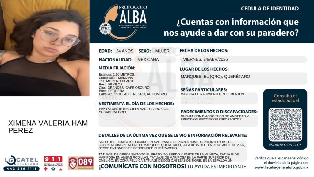 PROTOCOLOALBA|buscan a Jimena Valeriano Ham Pérez