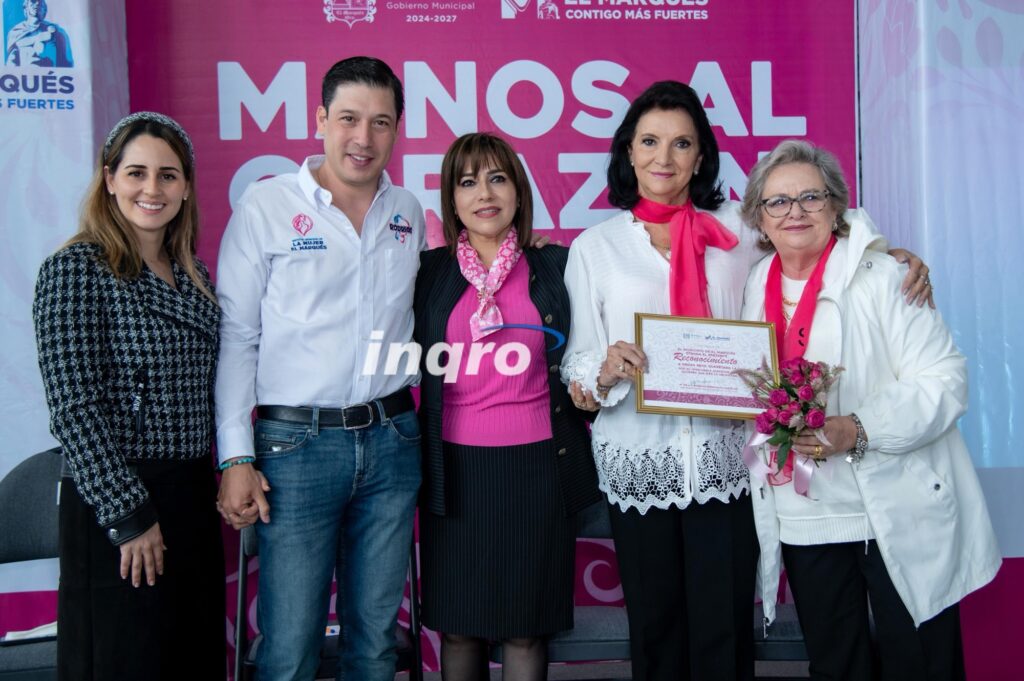 En la ceremonia se rindió un homenaje a Francisca Contreras, mujer que enfrentó con fortaleza el cáncer, reconocimiento que fue recibido por su hija, Magda Contreras Infante. De igual manera, se entregó un reconocimiento a la Asociación Grupo Reto Querétaro I.A.P. por su labor y compromiso en favor de la salud de las mujeres marquesinas.