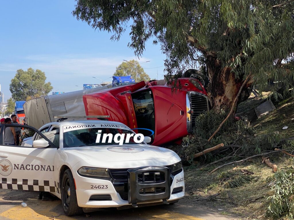 Servicios de emergencias y elementos de la Guardia Nacional, se movilizaron a carriles laterales de la autopista federal 57 México – Querétaro, en donde se reportó la salida de camino y volcadura de un tráiler.