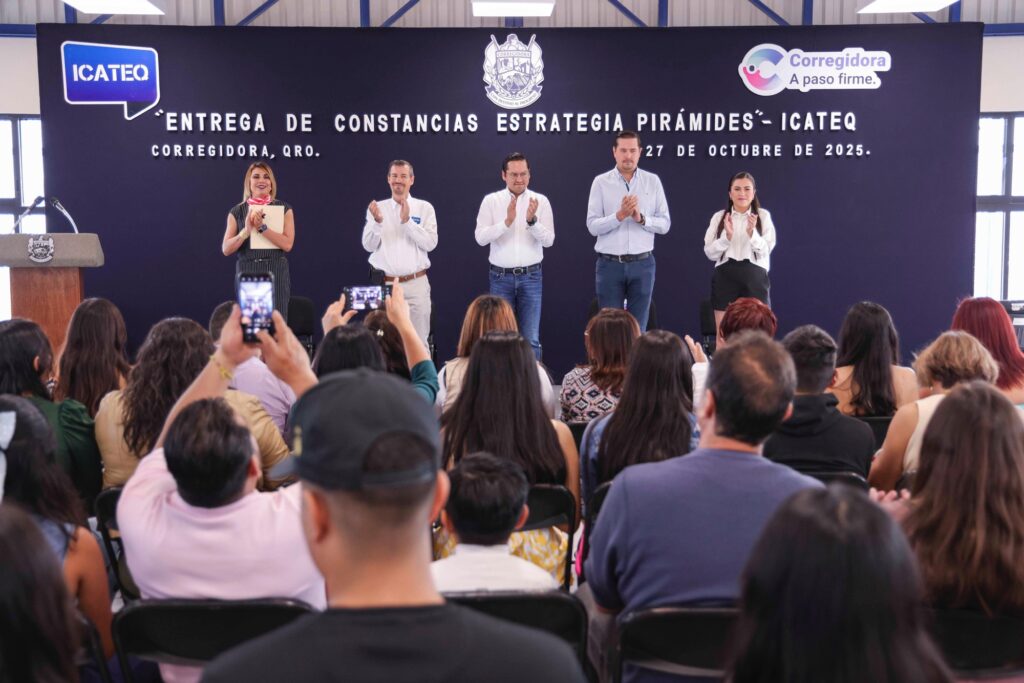 El presidente municipal de Corregidora, Chepe Guerrero, entregó 35 constancias a las y los participantes de los talleres del Instituto de Capacitación para el Trabajo del Estado de Querétaro (ICATEQ), como parte de la estrategia Pirámides, orientado a promover la capacitación y el desarrollo integral de la comunidad.