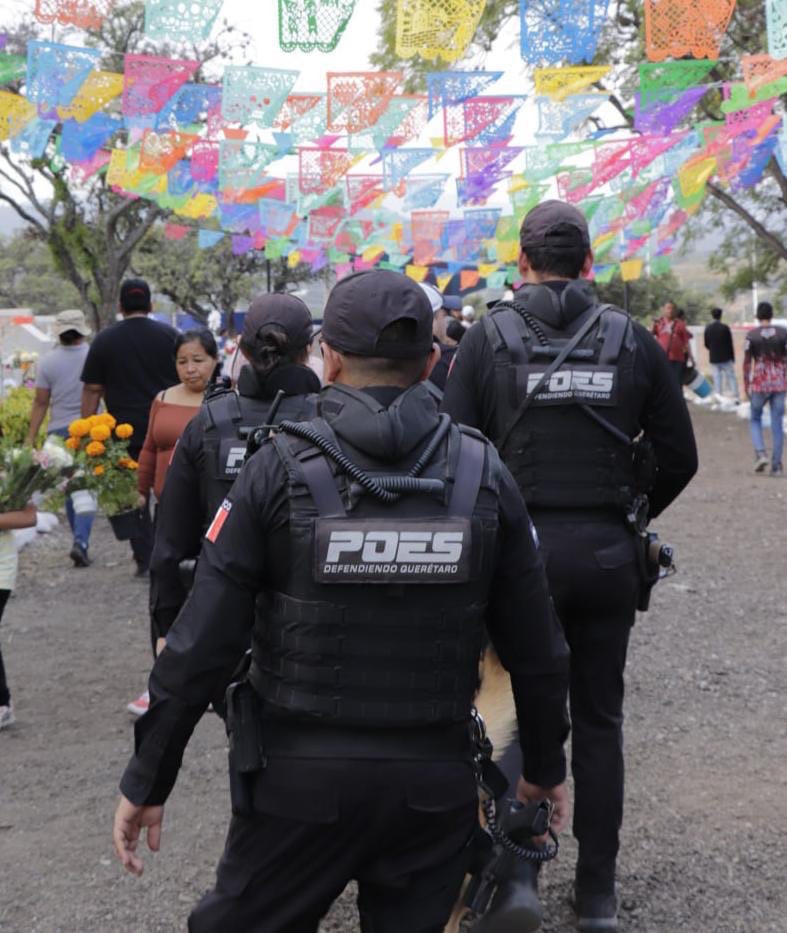Durante estos días, se mantendrán recorridos permanentes en panteones, plazas y espacios públicos con alta afluencia de habitantes y visitantes, con el objetivo de garantizar la seguridad y tranquilidad de las familias queretanas.