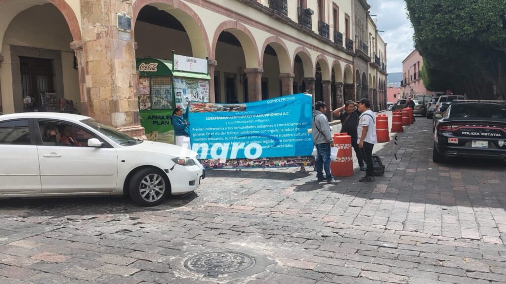 Un grupo de comerciantes irregulares han decidido bloquear la calle de Pasteur en el Centro Histórico de Querétaro.