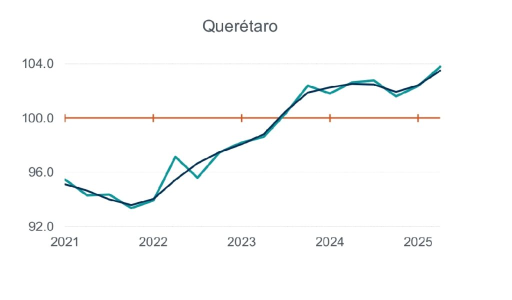 Finalmente, en el segundo trimestre de 2025, debido al aumento de 0.2 % en el total de la actividad económica, Querétaro se ubicó en el lugar 16, con 0.01 puntos porcentuales con respecto a la variación nacional.